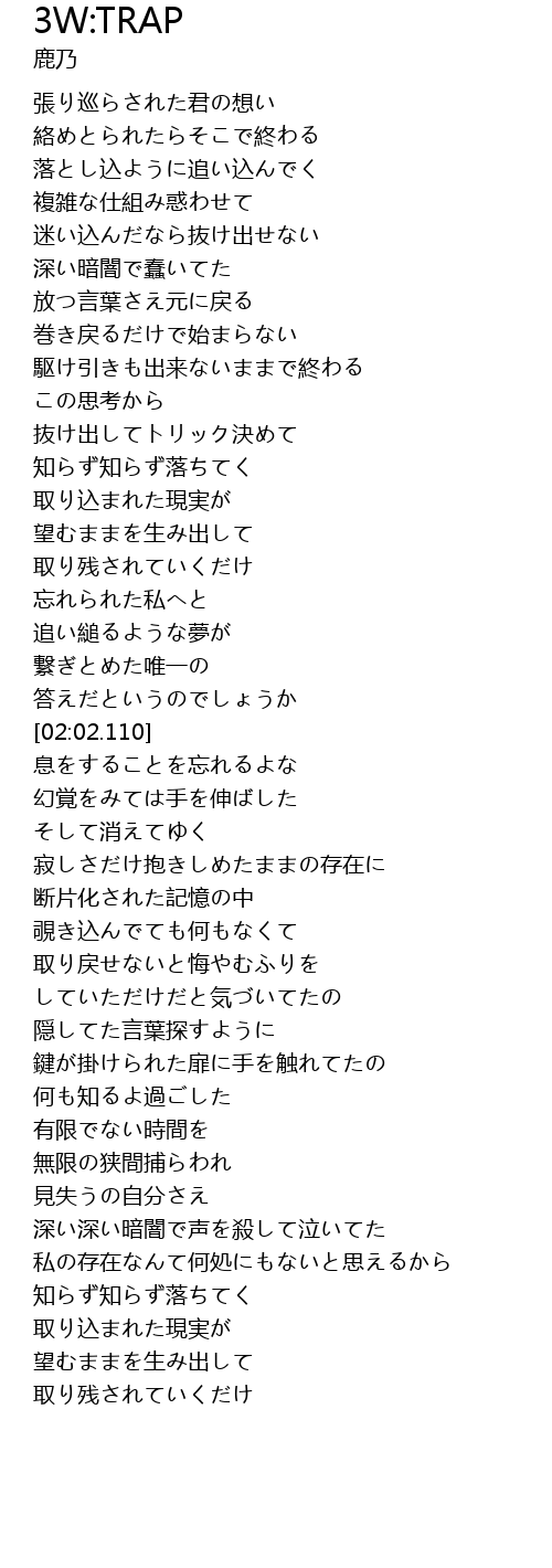 | [00:53.400] | 迷い込んだなら抜け出せない |