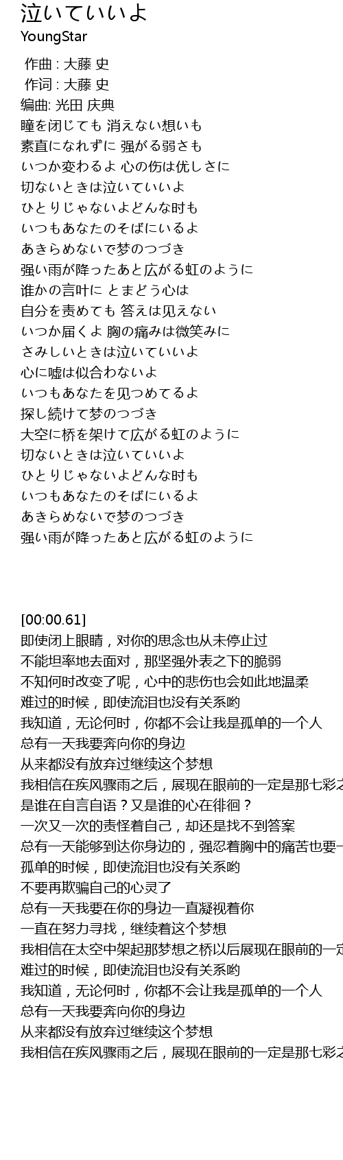 | [00:00.20] | 作词 : 大藤 史 |
