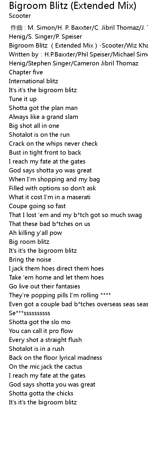 | [00:00.303] | Bigroom Blitz Extended Mix Scooter Wiz Khalifa |