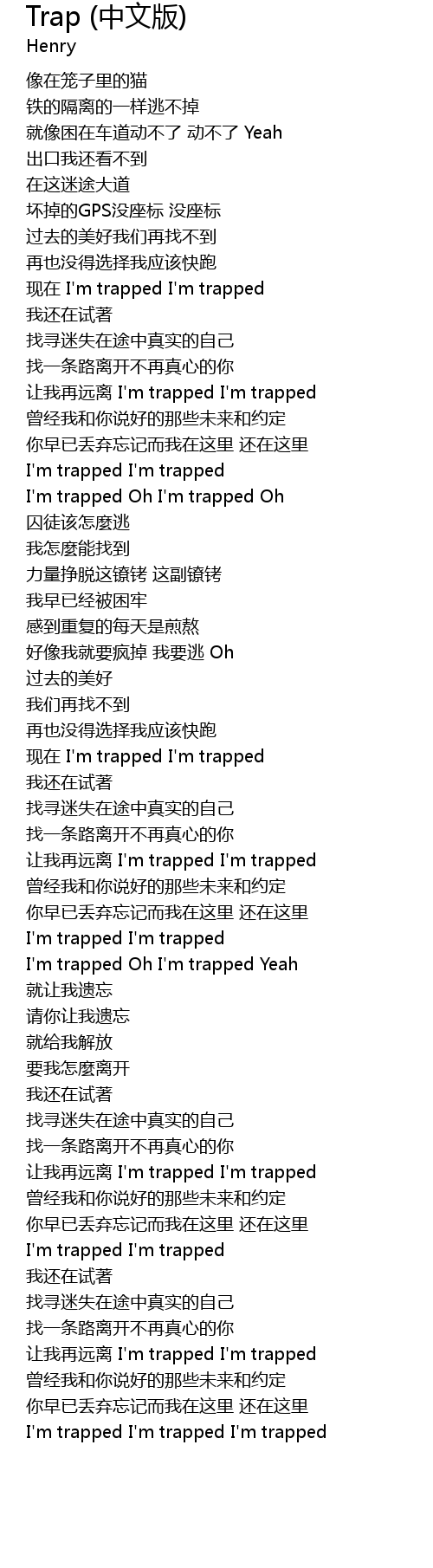 | [01:17.510] | I'm trapped Oh I'm trapped Oh |
