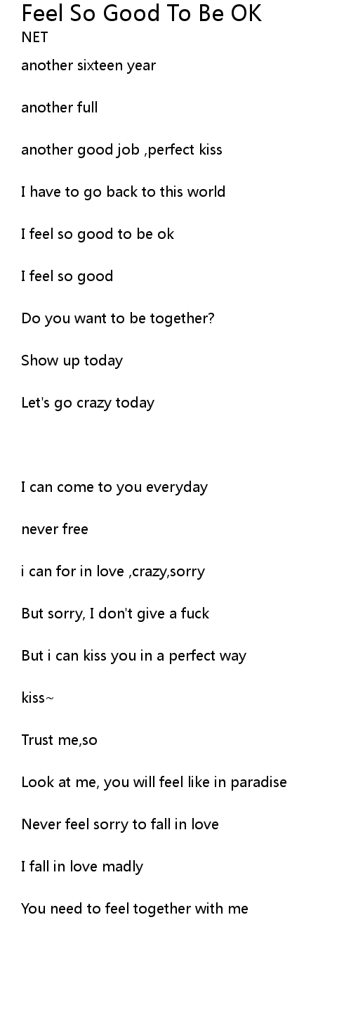 | I feel so good to be ok | |