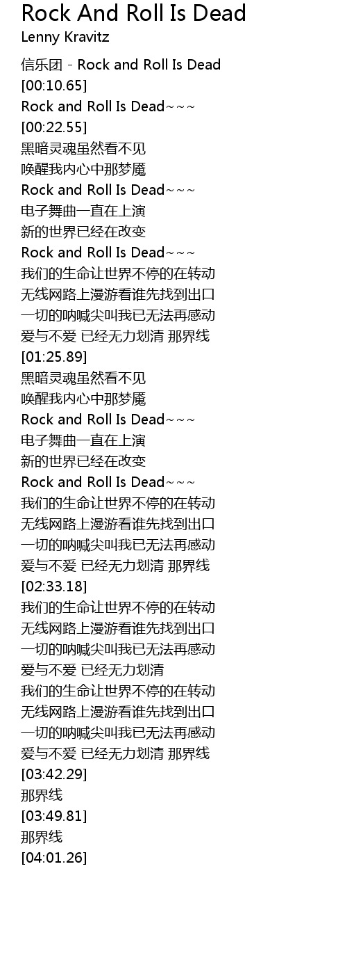 | [01:44.65] | Rock and Roll Is Dead |