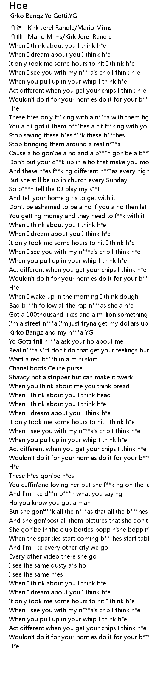 | [01:27.142] | Bad b***h follow all the rap n***as she a h*e |