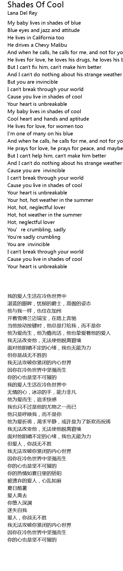 | [02:03.43] | My baby lives in shades of cool |