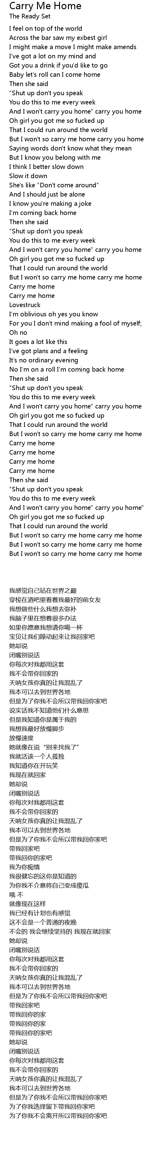 And I won't carry you home" carry you home" |