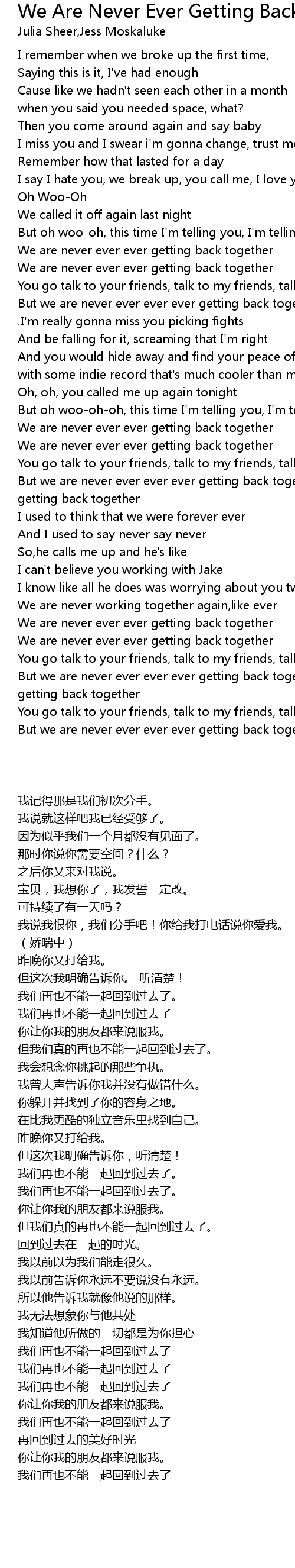 But we are never ever ever ever getting back together |