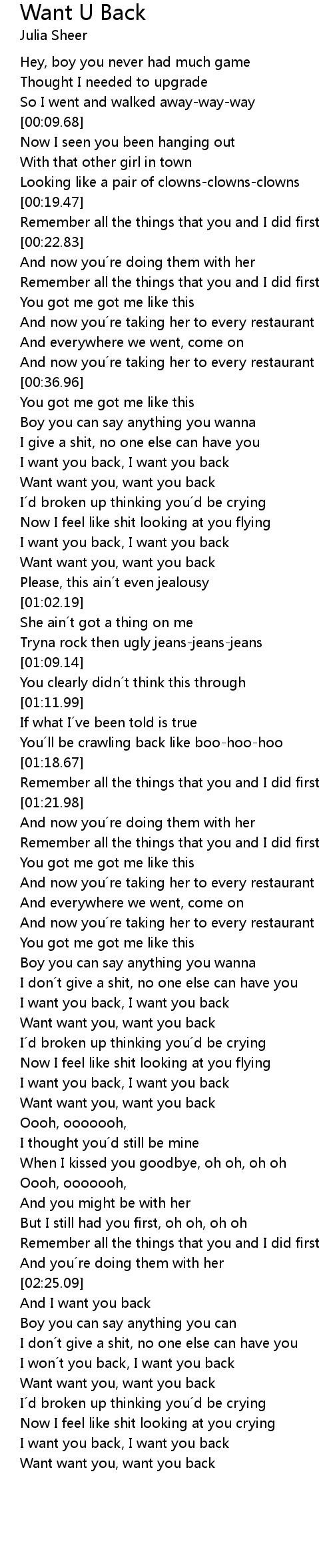 | [00:47.29] | Want want you, want you back |