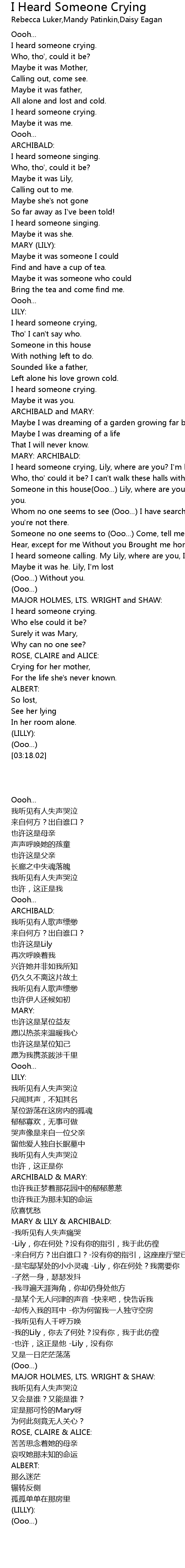 I heard someone crying, Lily, where are you? I'm lost without you. |