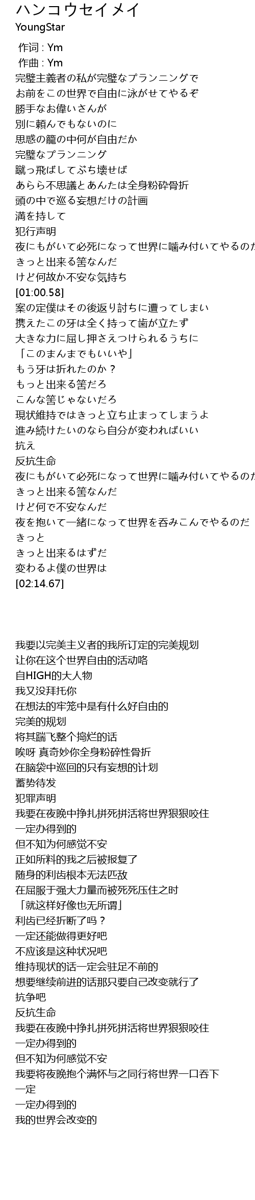 | [00:42.37] | 夜にもがいて必死になって世界に噛み付いてやるのだ |