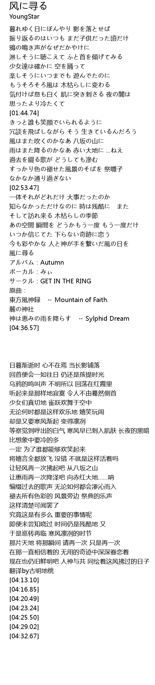 | [04:25.50] | 東方風神録 ~ Mountain of Faith. |