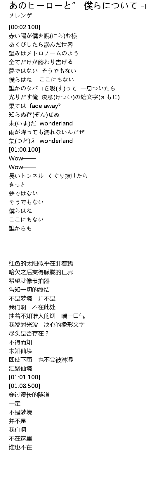 | [00:49.500] | 未(いま)だ wonderland |