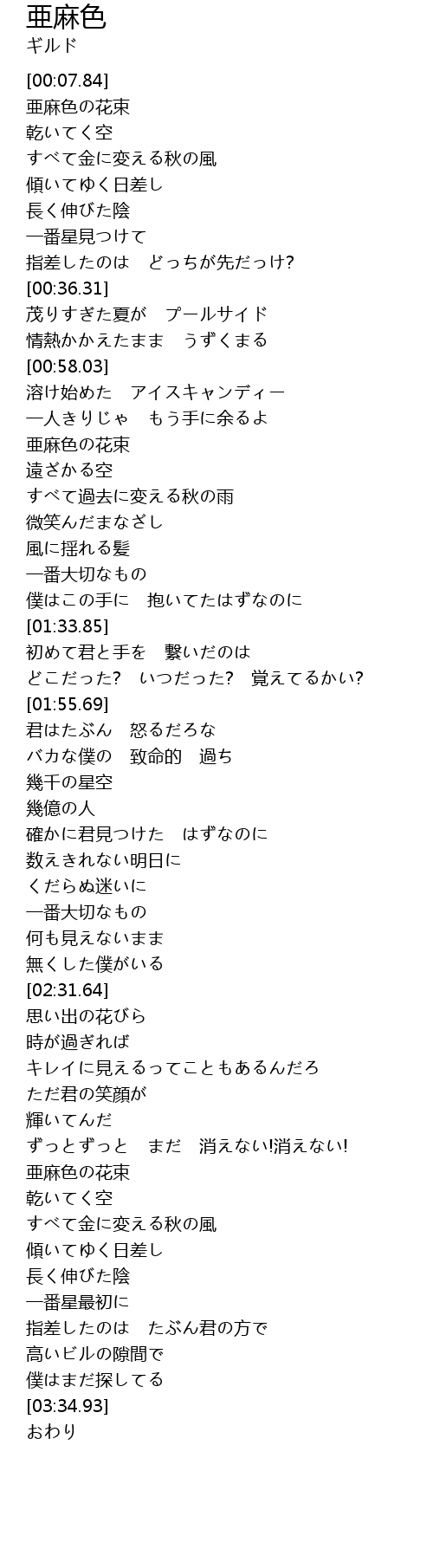 | [01:07.52] | 亜麻色の花束 |