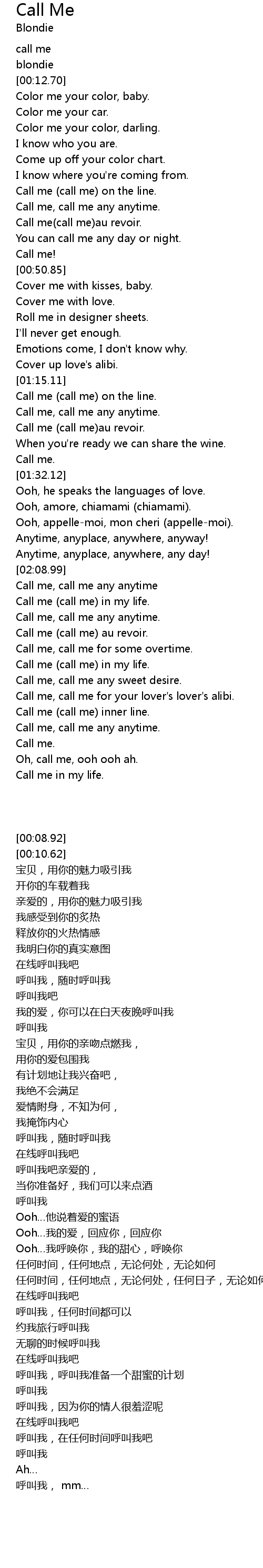 Call me, call me any anytime |