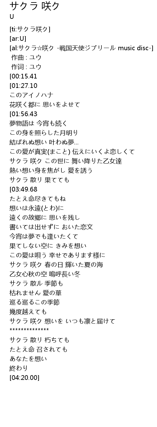 | [ti:サクラ咲ク] | |