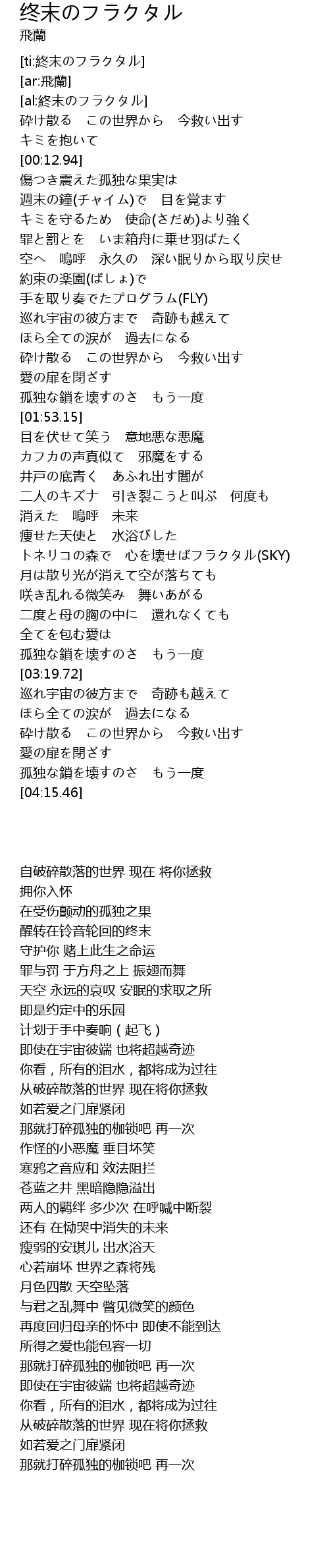 | [02:38.42] | トネリコの森で 心を壊せばフラクタル(SKY) |