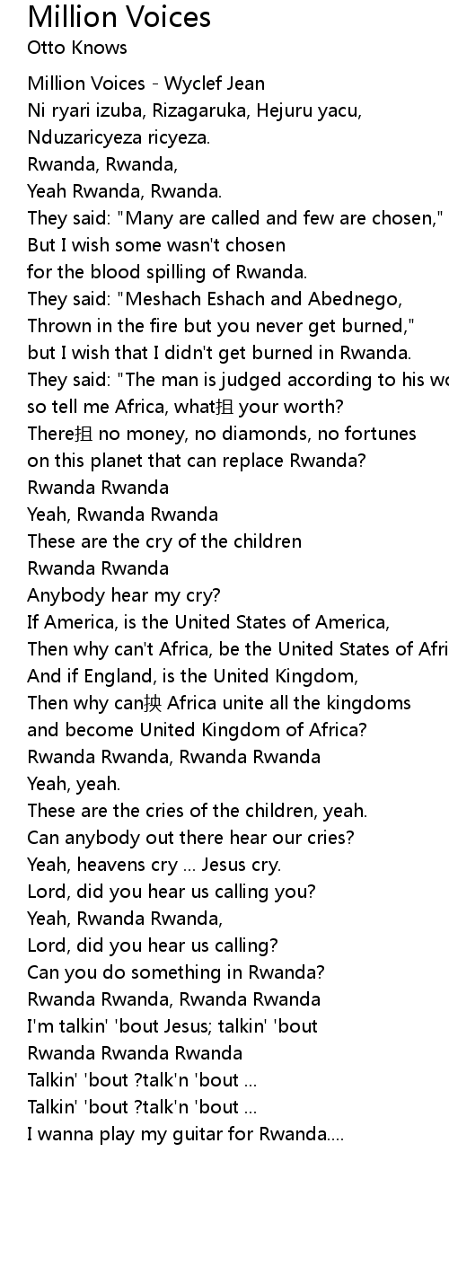 | [00:00.00] | Million Voices - Wyclef Jean |