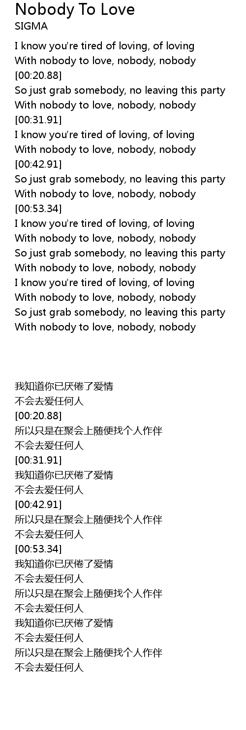 [00:15.99] With nobody to love, nobody, nobody