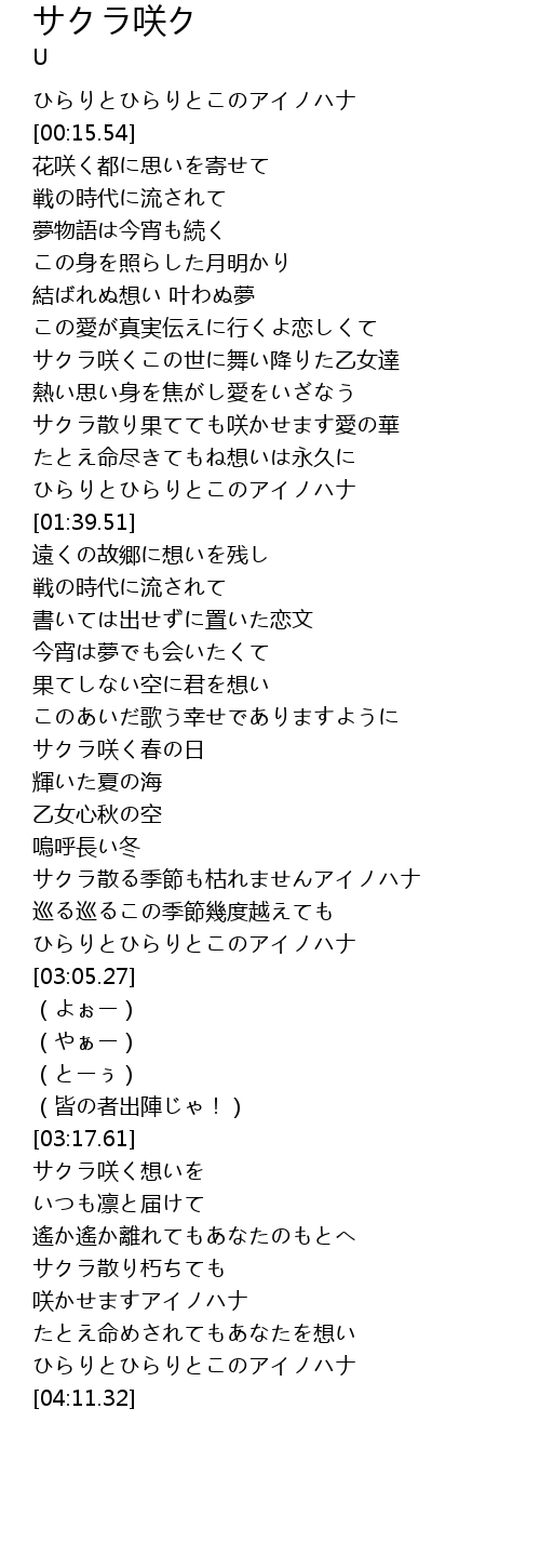 | [03:34.76] | サクラ咲く想いを |