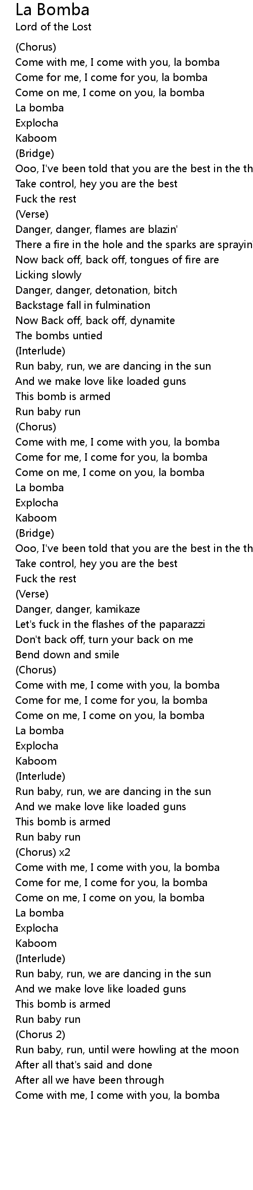 Come with me, I come with you, la bomba |