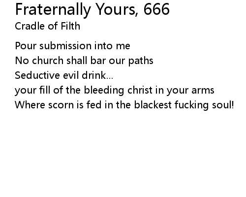 | Song | Fraternally Yours, 666 |