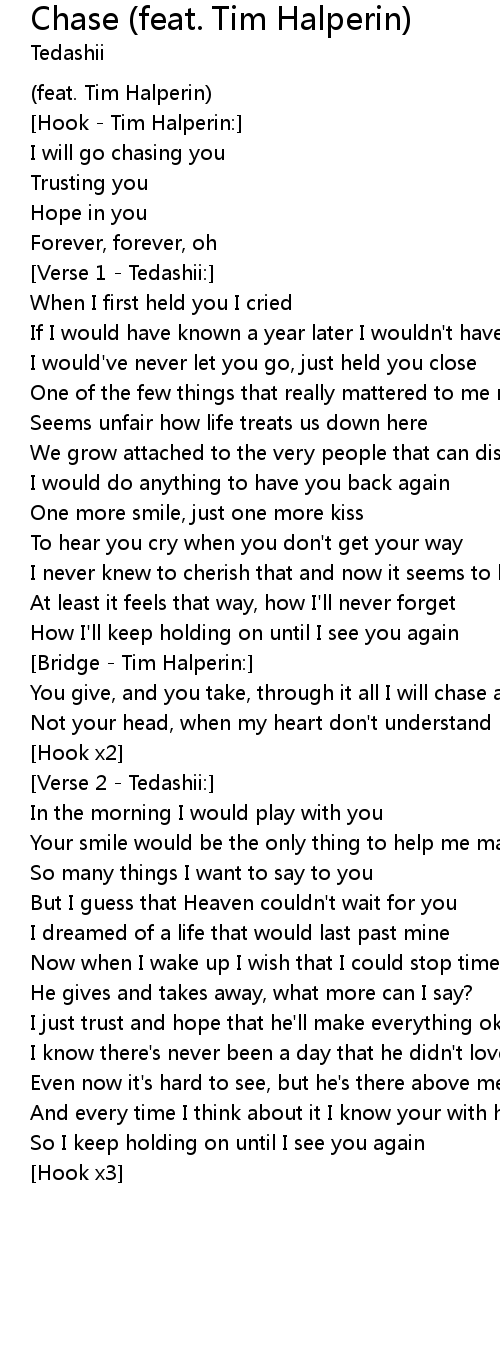 I will go chasing you |