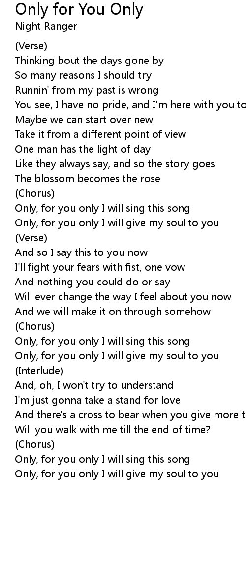 Only, for you only I will sing this song |