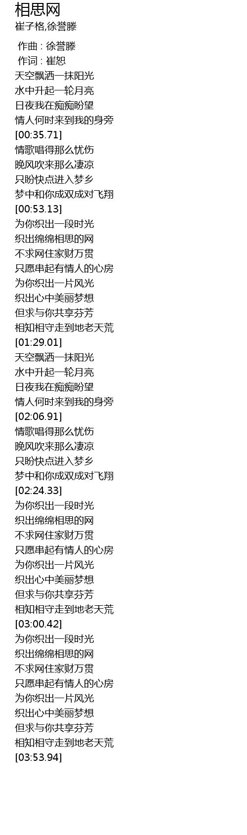 | [03:22.88] | zhi chu mian mian xiang si de wang |