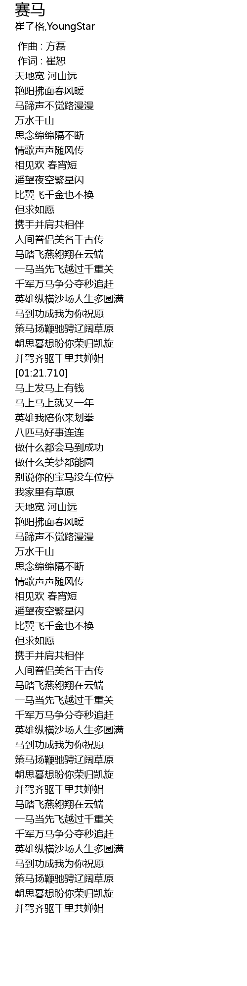 | [01:39.880] | 马蹄声不觉路漫漫 |