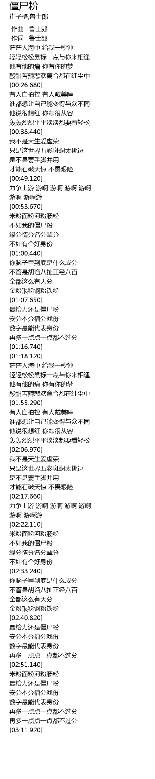 | [01:07.880] | 最给力还是僵尸粉 |