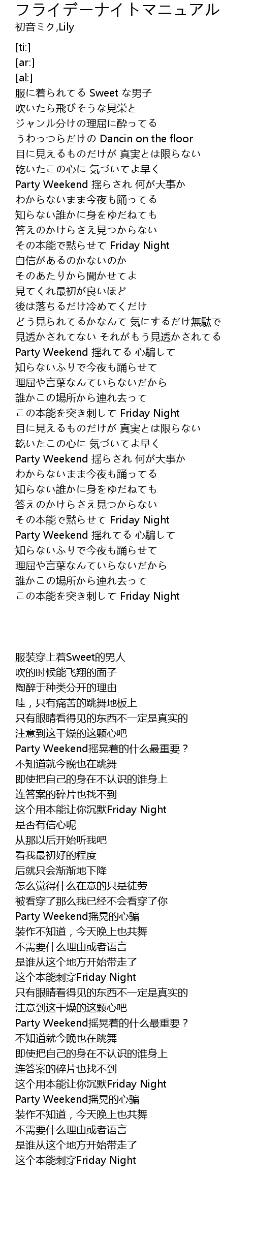 | [03:00.22] | その本能で黙らせて Friday Night |