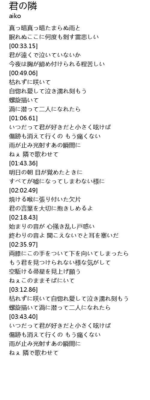 | [04:11.70] | ねぇ 隣で歌わせて |