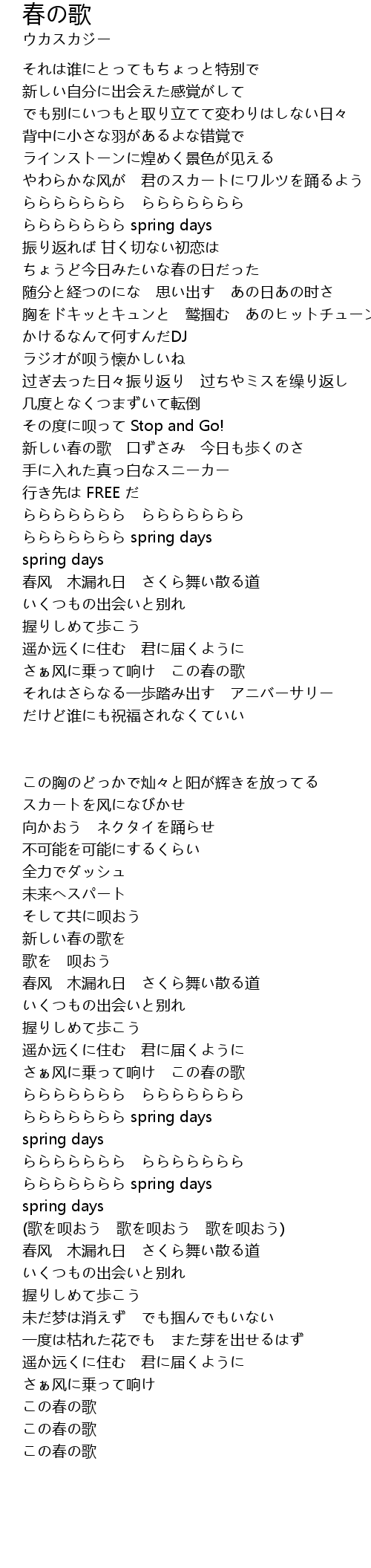 | 新しい春の歌 口ずさみ 今日も歩くのさ | |