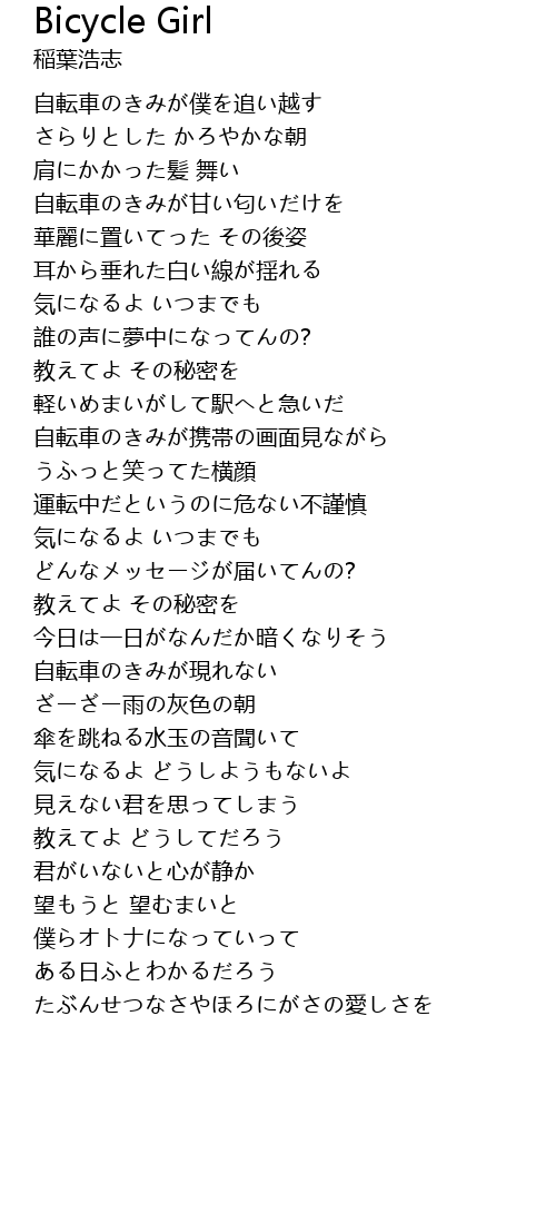 | Song | Bicycle Girl |