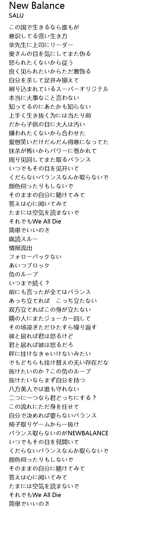 | [02:21.36] | バランス取らないのがNEWBALANCE |