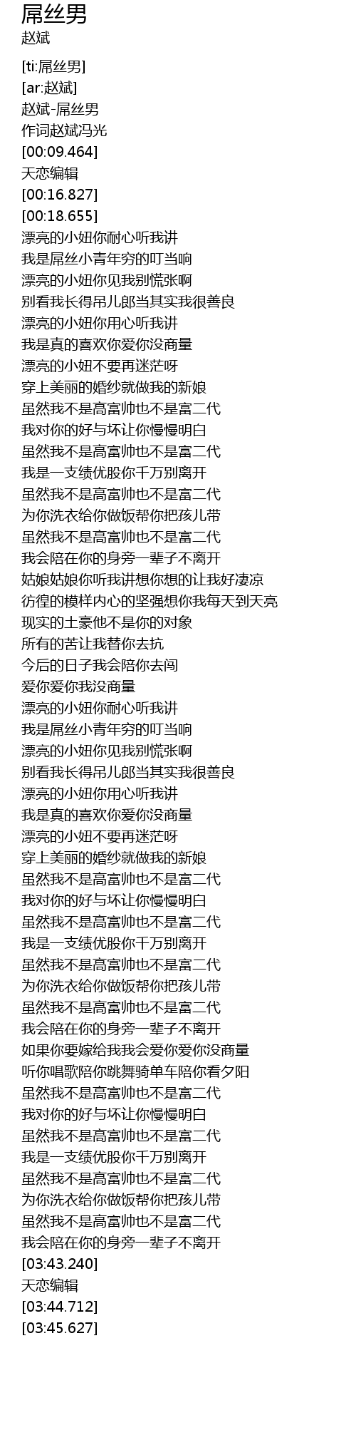 | [00:01.86] | 赵斌-屌丝男 |