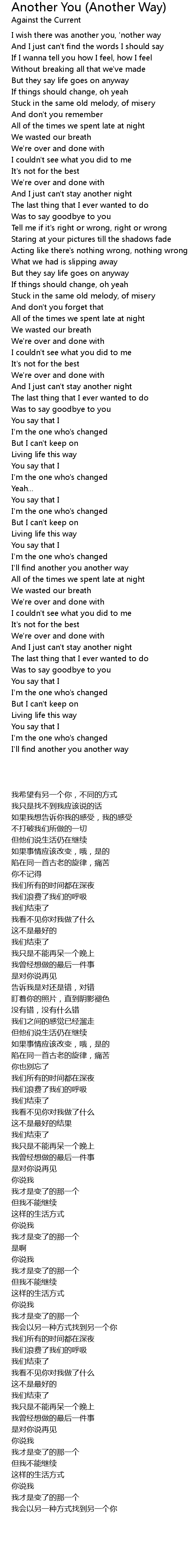 I wish there was another you, 'nother way |