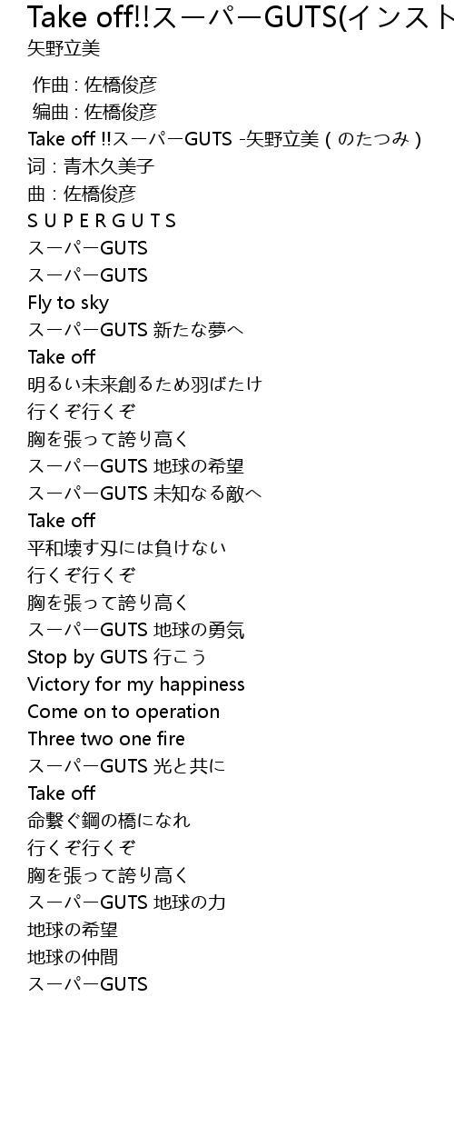 | [00:00.00] | Take off !!スーパーGUTS -矢野立美(のたつみ) |
