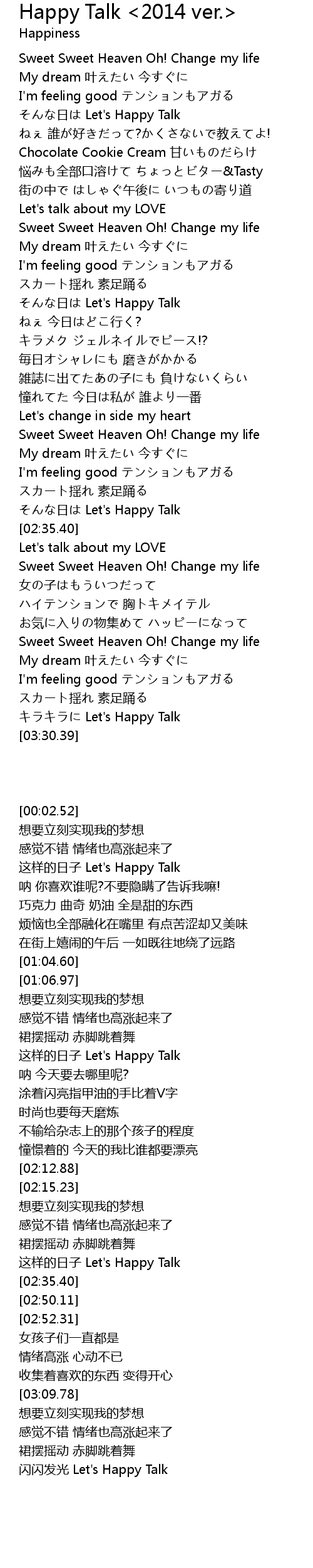 | [02:30.53] | rì Let' s Happy Talk |