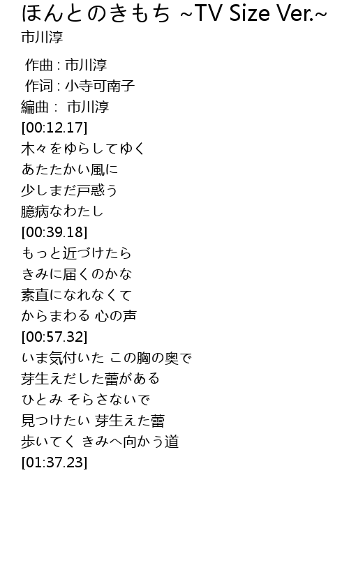 | [00:01.00] | 作词 : 小寺可南子 |