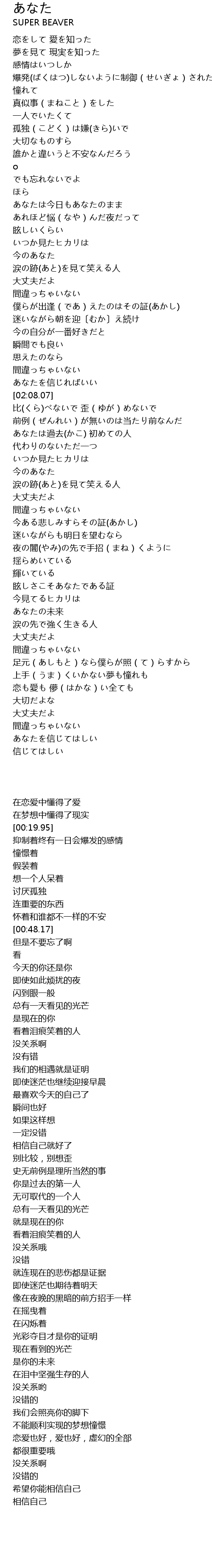 | [02:30.53] | あなたは過去(かこ) 初めての人 |
