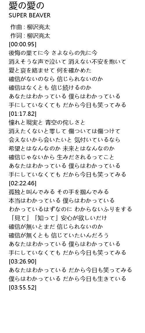 | [03:13.86] | あなたはわかっている 僕らはわかっている |