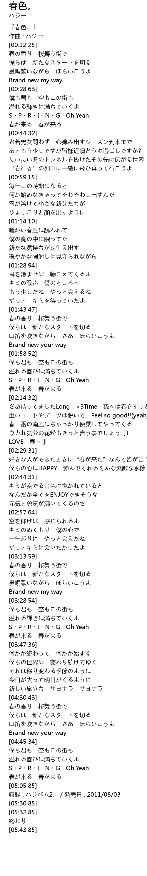 | [05:25.85] | 収録∶ハジバム2。/発売日∶2011/08/03 |