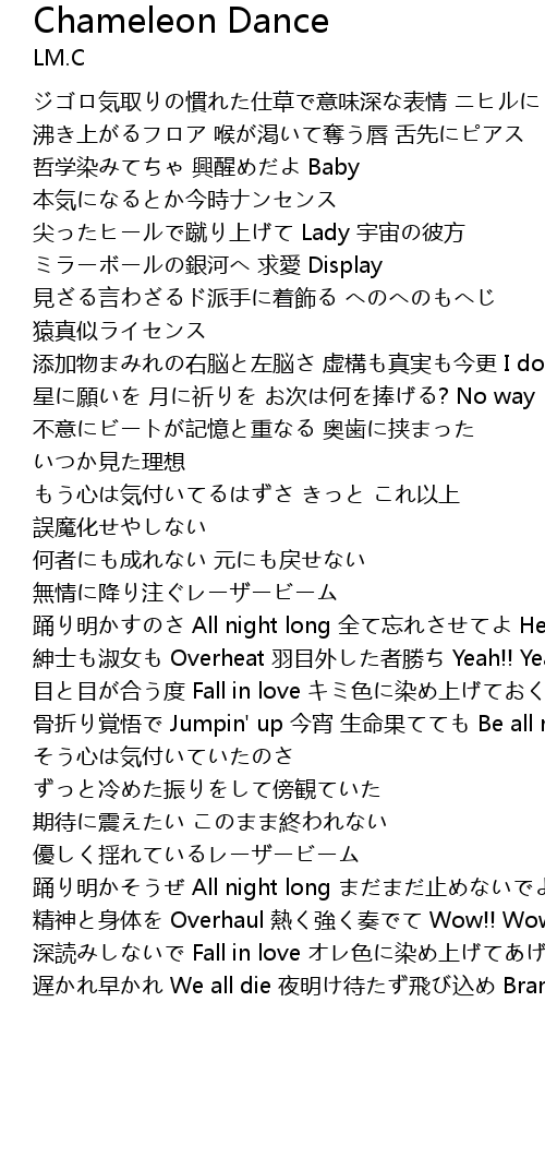 | 踊り明かすのさ All night long 全て忘れさせてよ Hey DJ | |