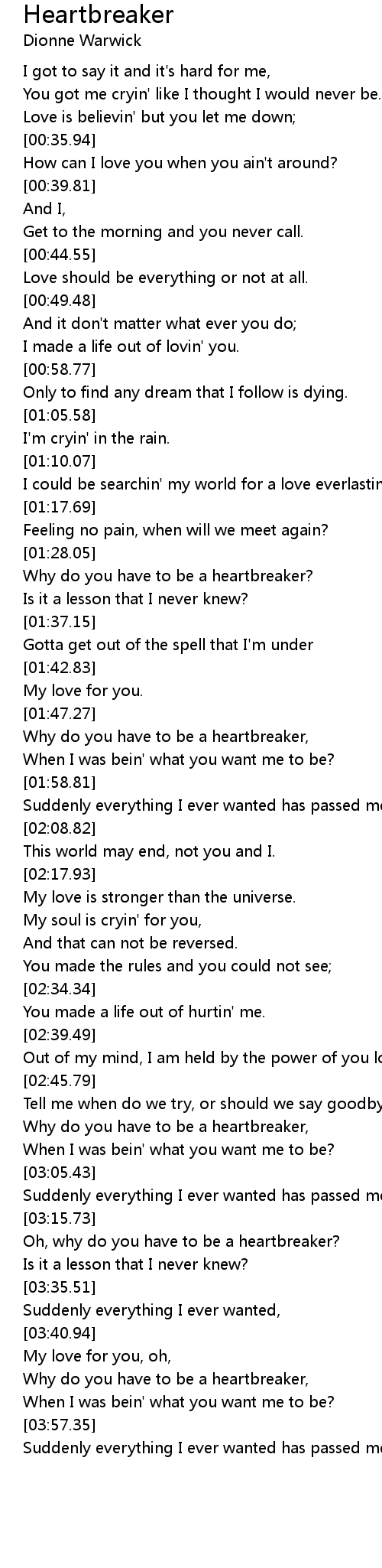 Oh, why do you have to be a heartbreaker? |