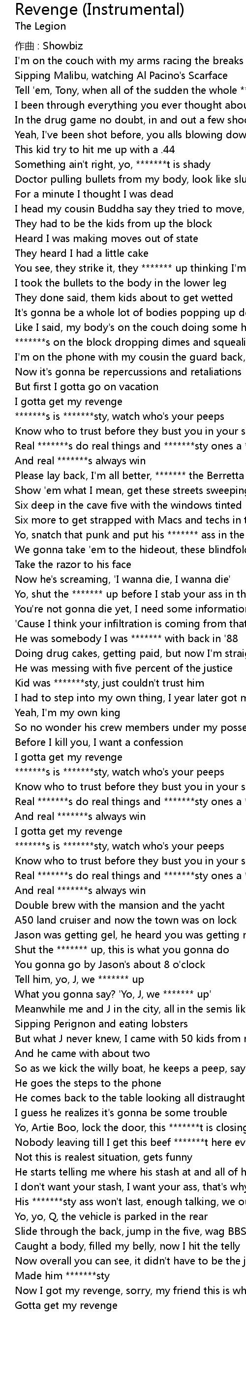 | Now I got my revenge, sorry, my friend this is where the story has to end | |