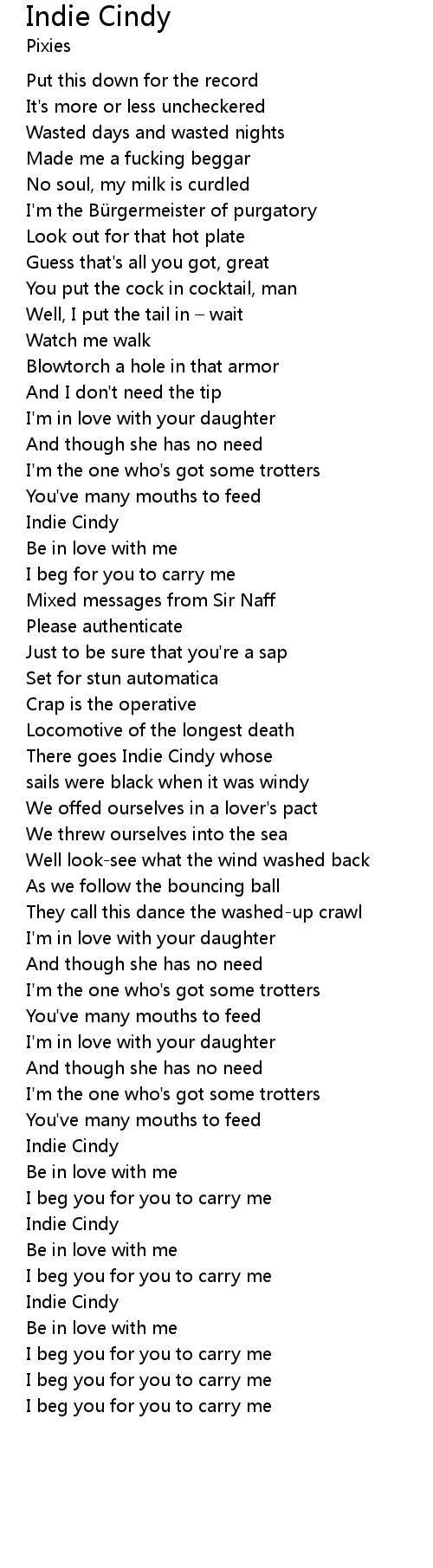 | Song | Indie Cindy |