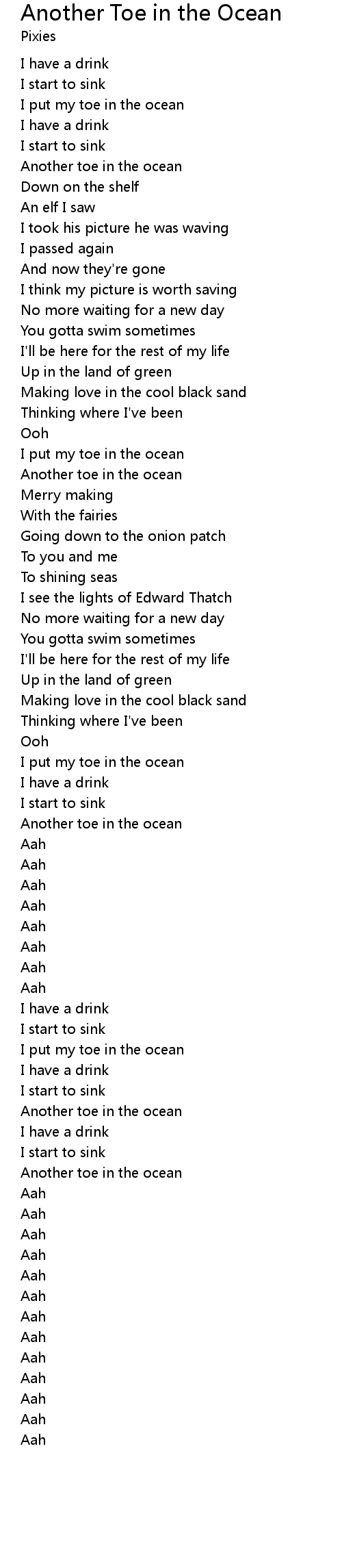 I put my toe in the ocean |