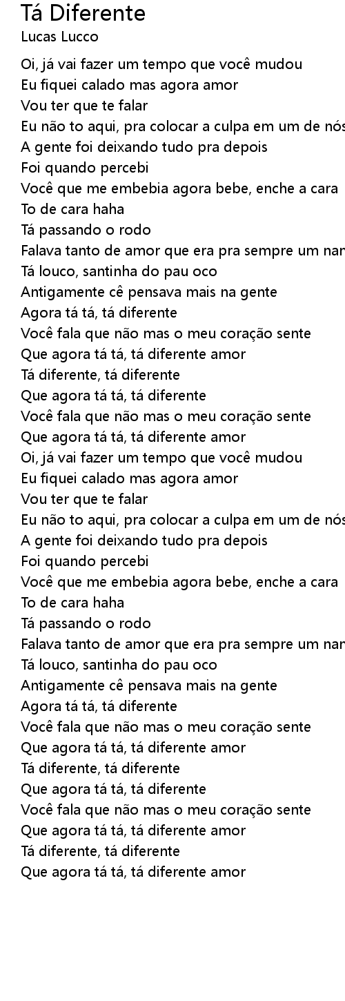 | Que agora ta ta, ta diferente amor |
