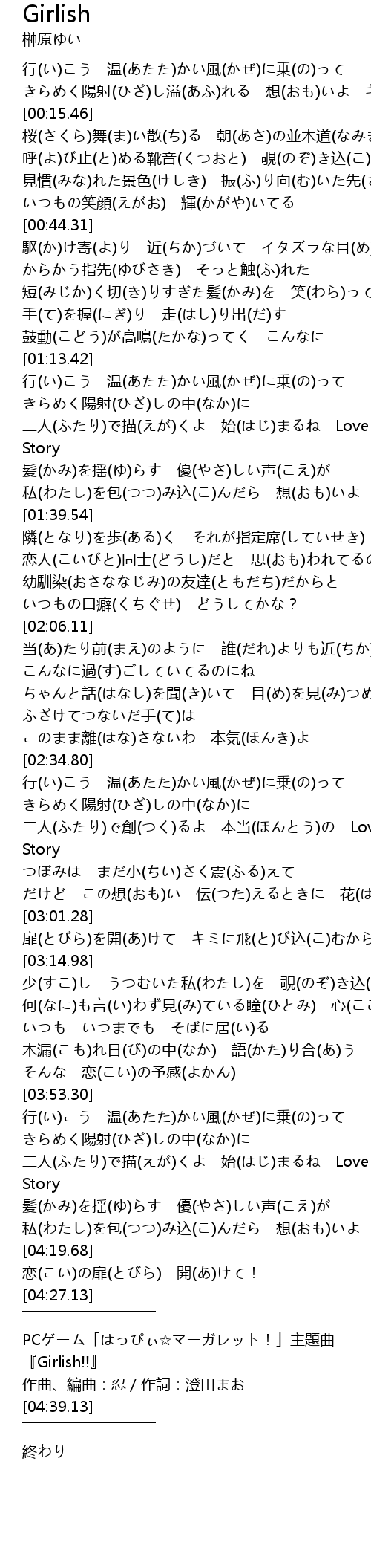 | [04:31.13] | PCゲーム「はっぴぃ☆マーガレット!」主題曲 |