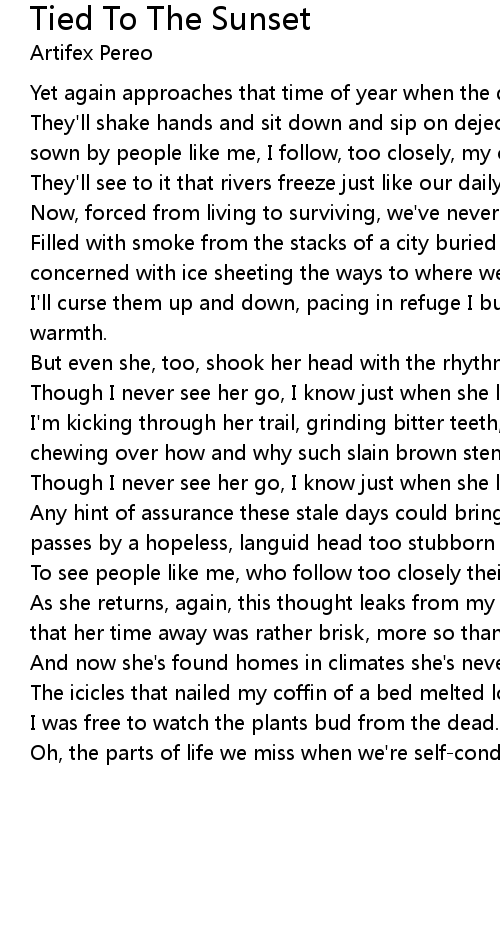 The icicles that nailed my coffin of a bed melted long before I noticed |